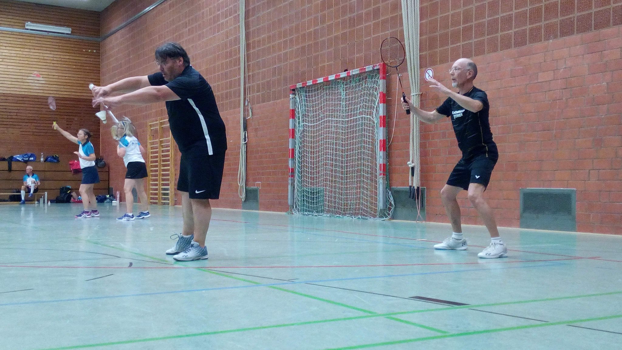 Nachdem das 2. Herrendoppel kampflos an Burgdorf ging durfte Harald mit seinem Spielpartner Horst im 1. Herren-Doppel antreten. Nach kurzem synchronisieren konnte das Spiel mit 21:18 und 21:11 gewonnen werden.